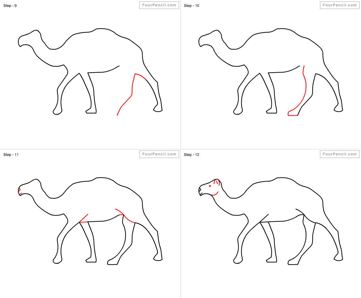 How to draw Camel easy - step by step - Fact - Camels mate by having both male and female sitting on the ground, with the male mounting from behind. The male usually ejaculates three or four times within a single mating session. Camelids are the only ungulates to mate in a sitting position.